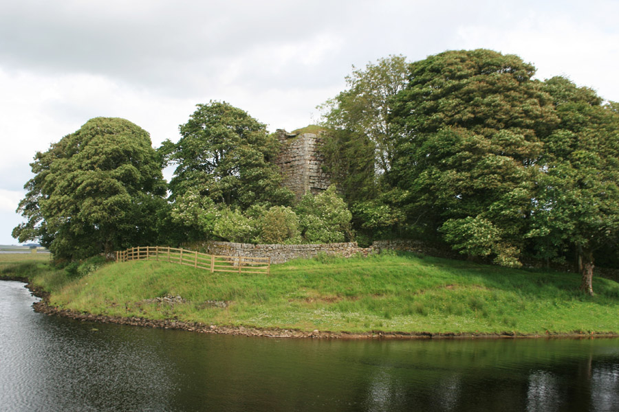 The castle stands on a raised mound jutting out into the Harperrig Reservoir where it is fed by the Water of Leith.